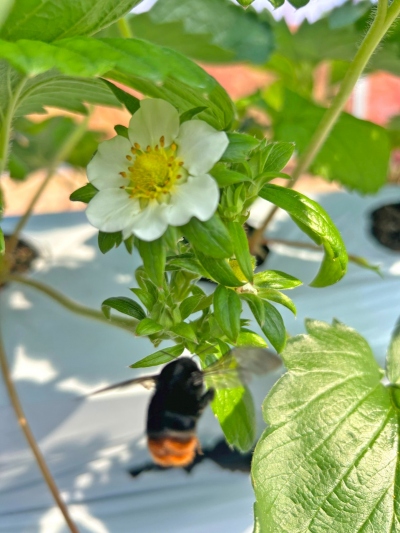 クロマルハナバチ 🐝が一生懸命🔥受粉に飛び回ってくれます。