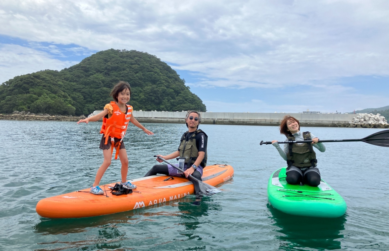 SUPは多少は体力が必要です。ファミリー(小学生を含む)ご参加の場合は、カヤックをおすすめします。